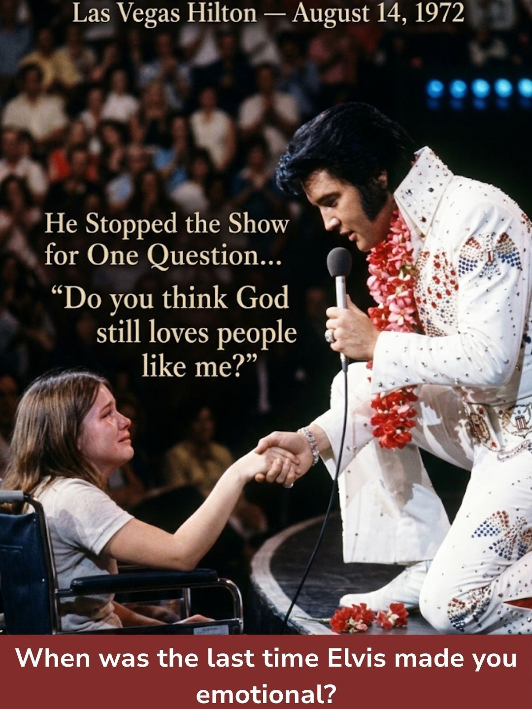 On August 14, 1972, Elvis Presley stopped a live performance in Las Vegas to connect with a fan in the audience, creating a moment that transcended music and left thousands in silence.