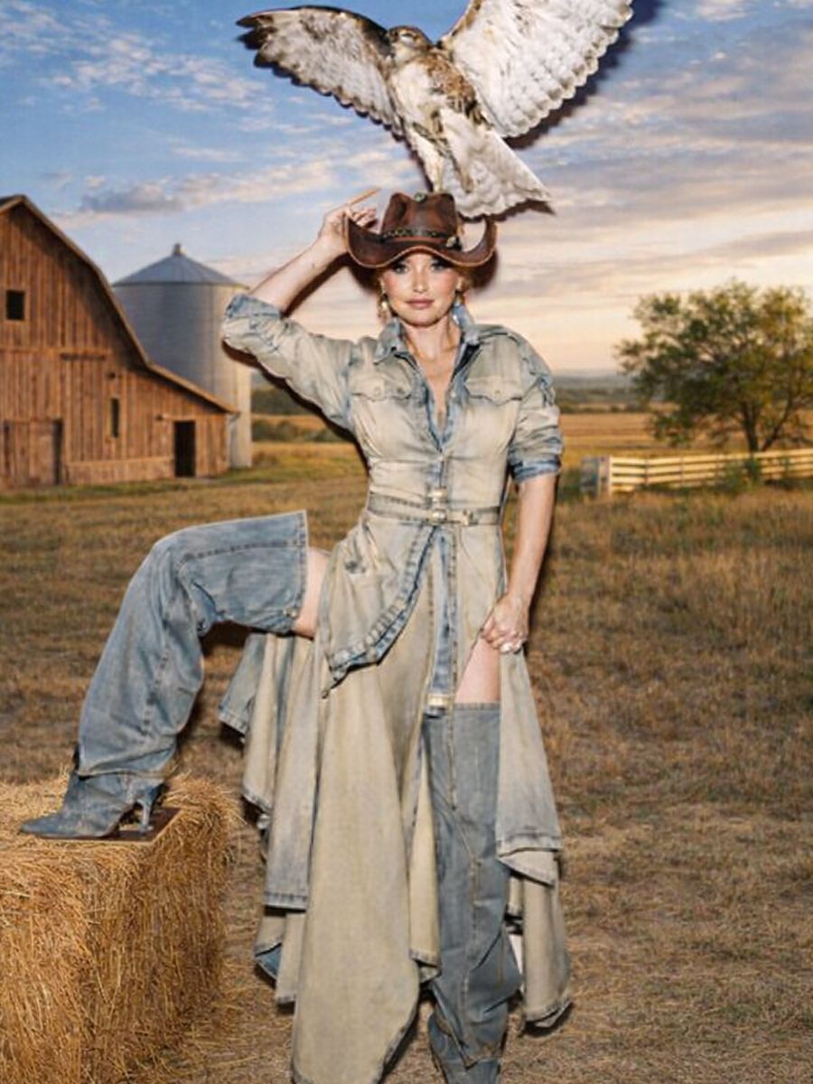 In this high-stakes visual reveal, the Queen of Country Pop has traded safety for edge. Shania appears in a “deconstructed” Canadian Tuxedo—a daring, avant-garde reimagining of her denim roots. Posing with Ruby, a majestic falcon, this isn’t just a photoshoot; it’s a ceremonial shedding of the past.