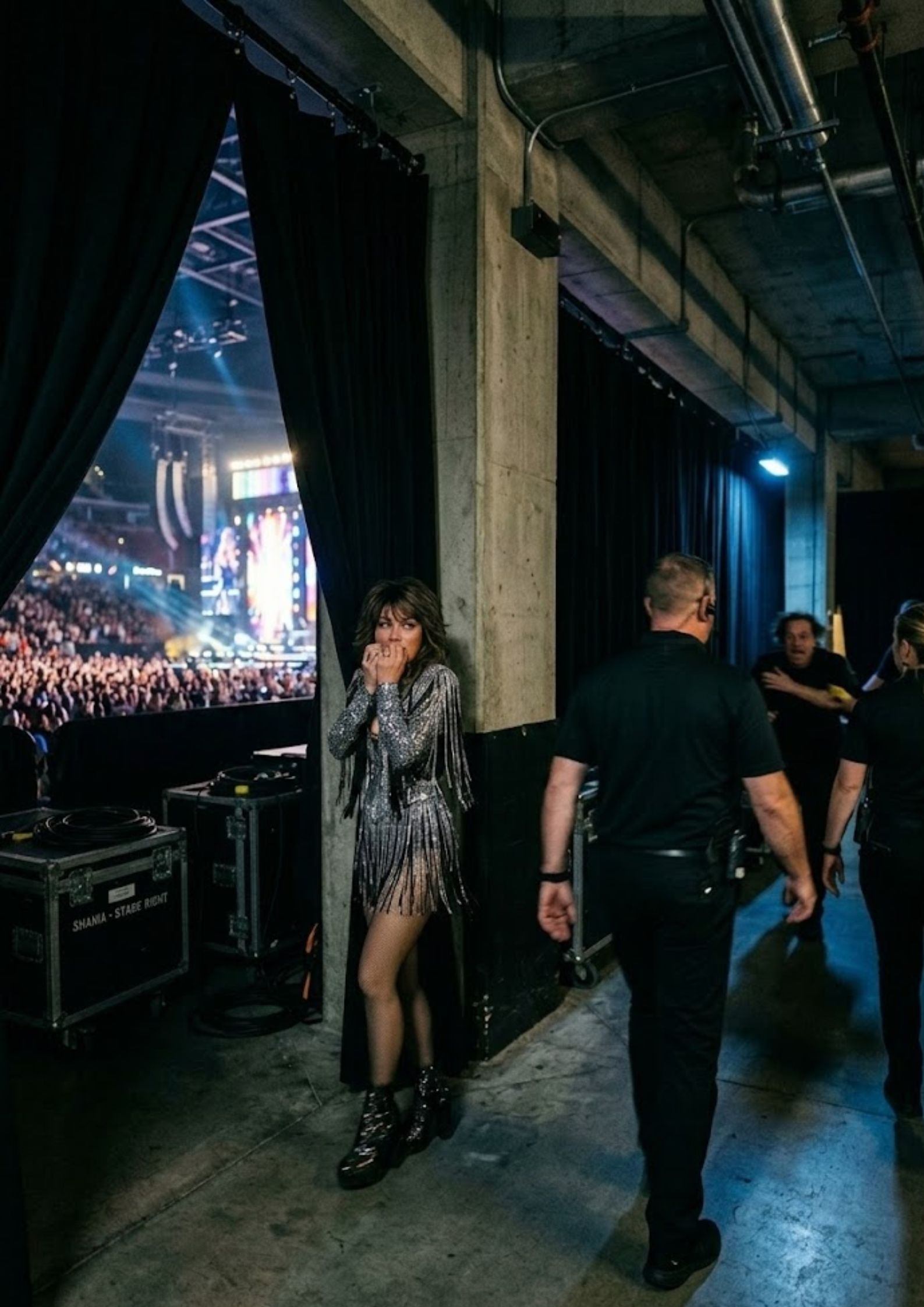 According to a senior staff member who spoke on the condition of anonymity, the incident occurred during a high-stress “quick change” area near the stage entrance. Despite the rigorous security protocols typical of a global mega-tour, a persistent individual managed to bypass a secondary checkpoint. In an aggressive attempt to grab the artist’s attention, the individual caused a physical scuffle that resulted in Shania sustaining a strain and minor bruising.