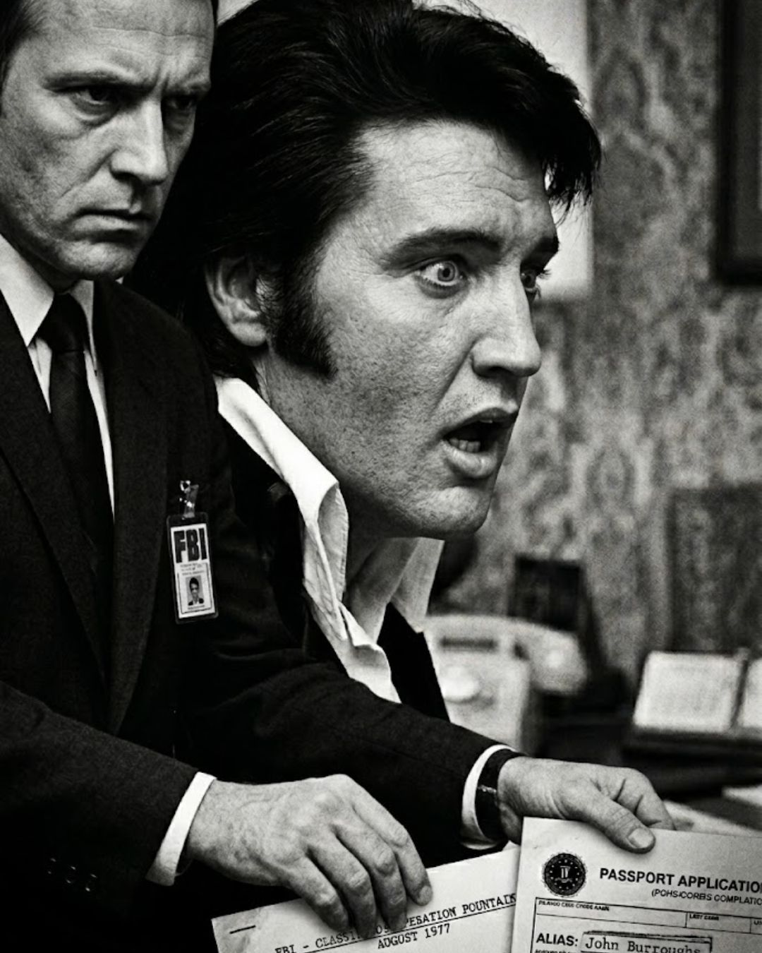 If Elvis died in Memphis, who was the man who flew out of the city the very next day? Flight manifests discovered in the updated files show a passenger matching Elvis’s exact description flying to an undisclosed location under the name “John Burroughs.” This wasn’t just any name—it was a known alias Elvis used for years to travel incognito.