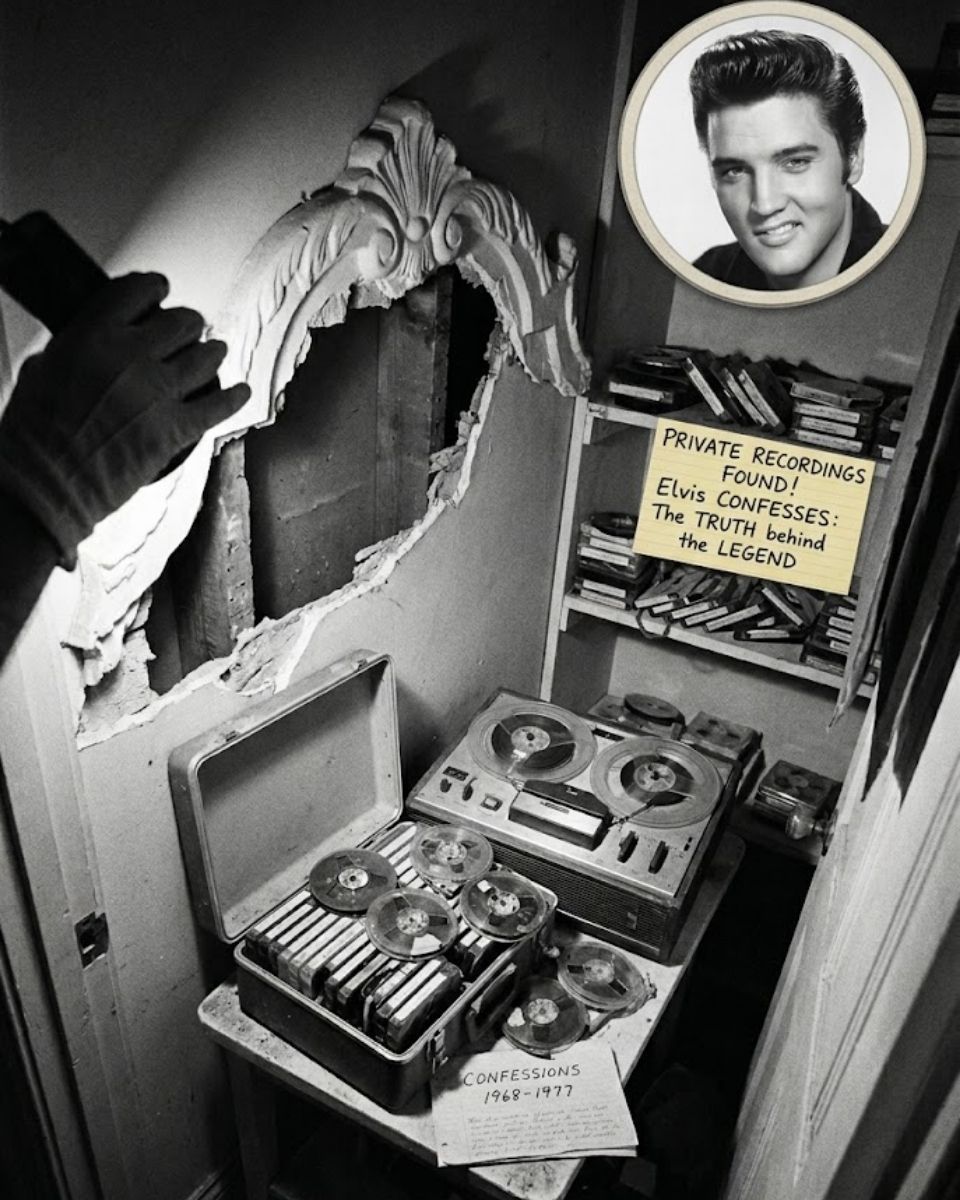 Shocking News has erupted from the heart of Memphis as a secret room hidden behind a false wall at the Graceland estate has finally been uncovered, revealing a collection of private audio diaries recorded by Elvis Presley himself. For decades, fans and historians believed every aspect of the King of Rock and Roll’s life had been documented, but these newly digitized tapes tell a harrowing story that was never meant for public ears. These are not musical recordings or rehearsals; they are the raw, unfiltered thoughts of a man who felt trapped by his own legend, captured in a sanctuary he built to keep the truth from the world.