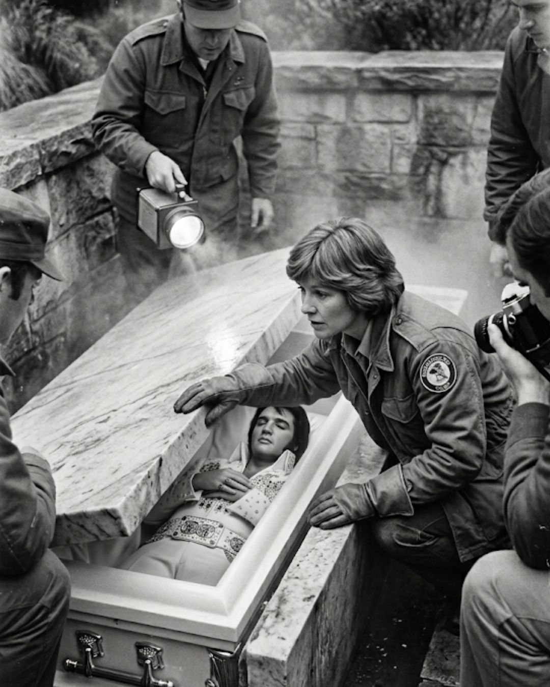 The world of music and mystery has been set ablaze by a leak that no one saw coming. For half a century, the final resting place of the “King of Rock and Roll,” Elvis Presley, remained a sacred, untouched sanctuary at Graceland. But today, the silence has been shattered. Reports have surfaced—accompanied by chilling “leaked” footage—that a secret team of government-contracted scientists and forensic experts officially unsealed Elvis’s tomb. What they discovered deep beneath the marble has not only defied science but has left the global community in a state of absolute disbelief.