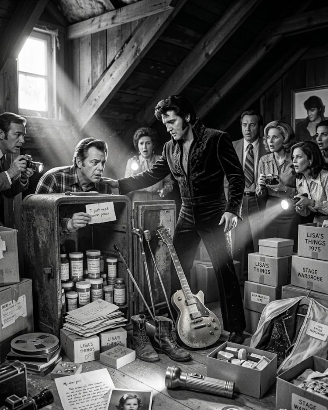 For decades, the Presley estate dismissed it as mere “unsafe storage.” But now, the silence has been shattered. The attic doors have been forced open, and what lay inside has sent shockwaves through the world. This isn’t just a discovery; it’s a time capsule of torment that strips away the legend and exposes the raw, broken man behind the crown.